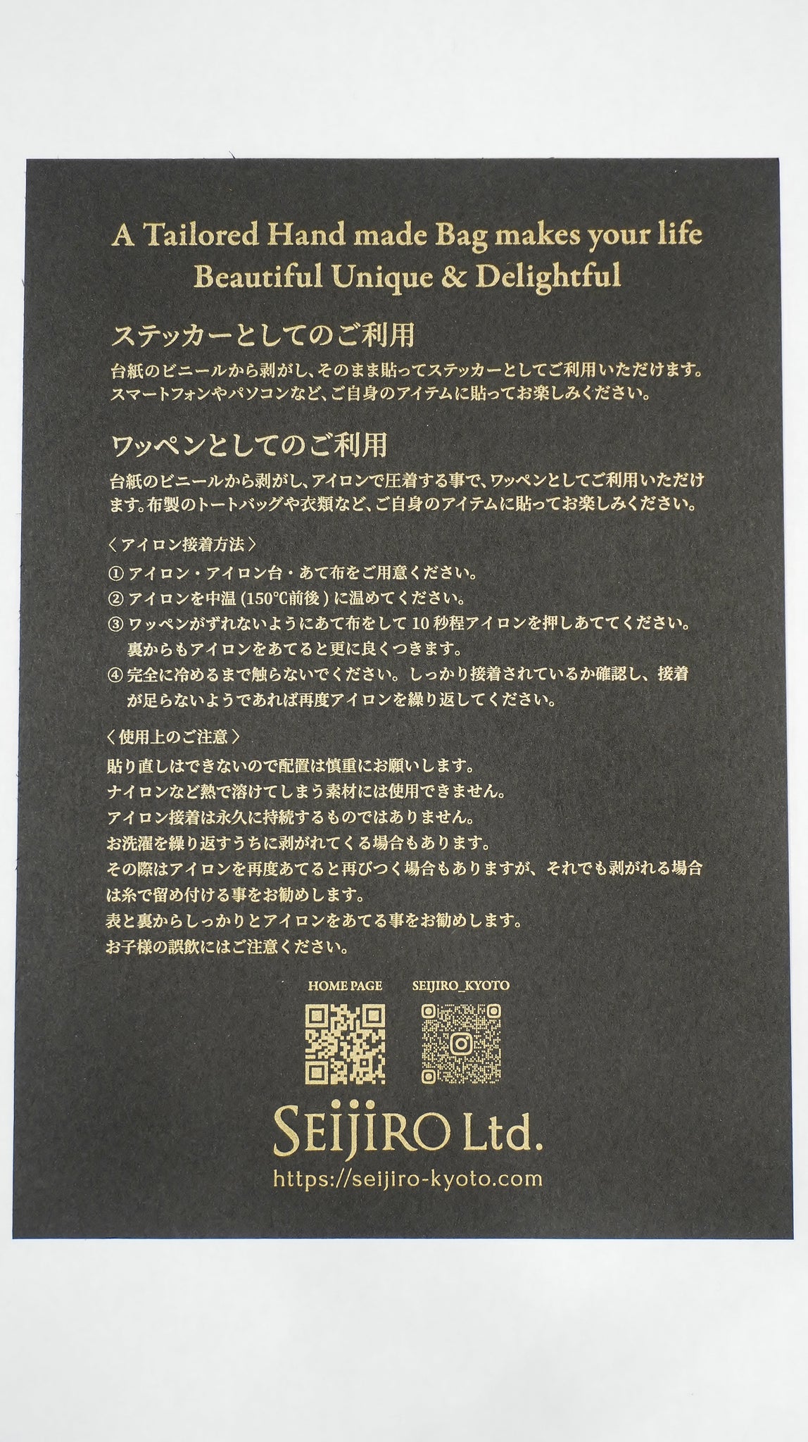 - 布製のバッグや衣類にワッペンとして、スマートフォンなどにステッカーとして、簡単に貼り付けることができます。